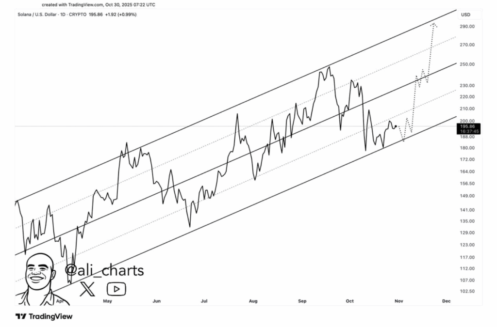 For now, SOL’s price action remains rather neutral, according to the popular analyst Ali Martinez. Traders are closely watching the $192–$206 range. Any move beyond that would open the door to $237, whereas any fall would direct the prices to $182.